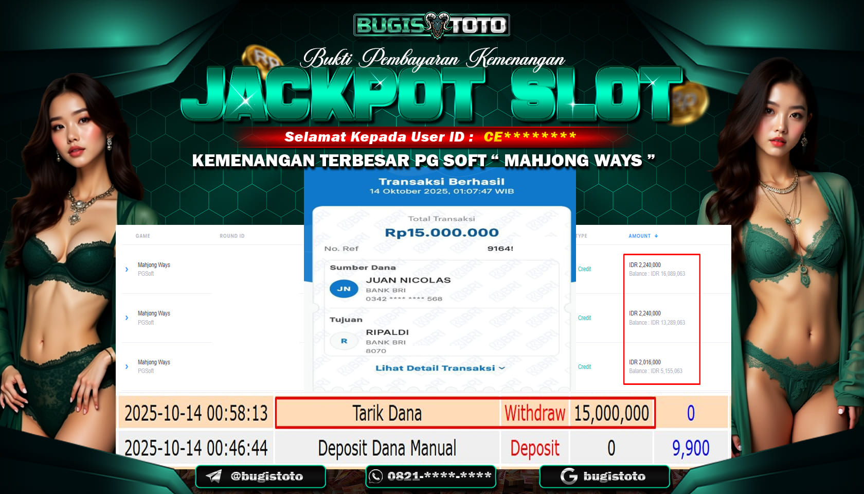 JACKPOT MEMBER SETIA BUGISTOTO SLOT RP-14.000.000,JUTA