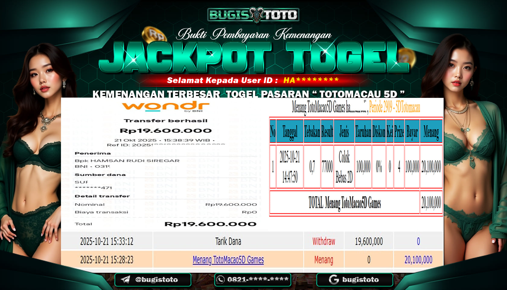BUKTI JACKPOT MEMBER SETIA BUGISTOTO TOGEL RP-19.000.000, JUTA