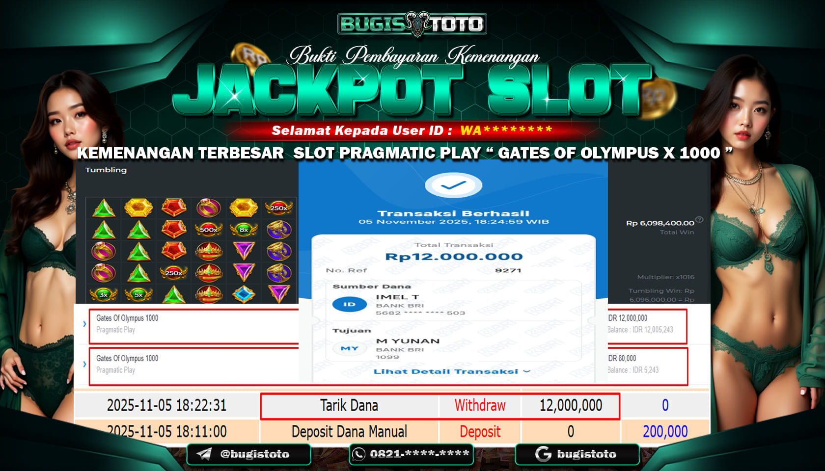 BUKTI JACKPOT MEMBER SETIA BUGISTOTO SLOT RP-6.000.000–, JUTA