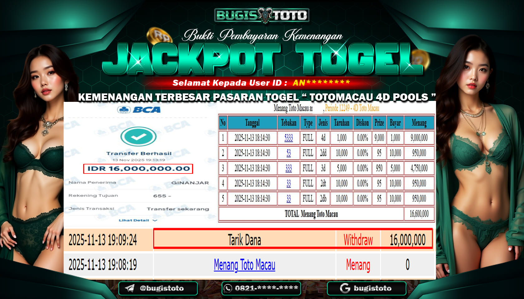 JACKPOT MEMBER SETIA BUGISTOTO SLOT RP-16.000.000,JUTA