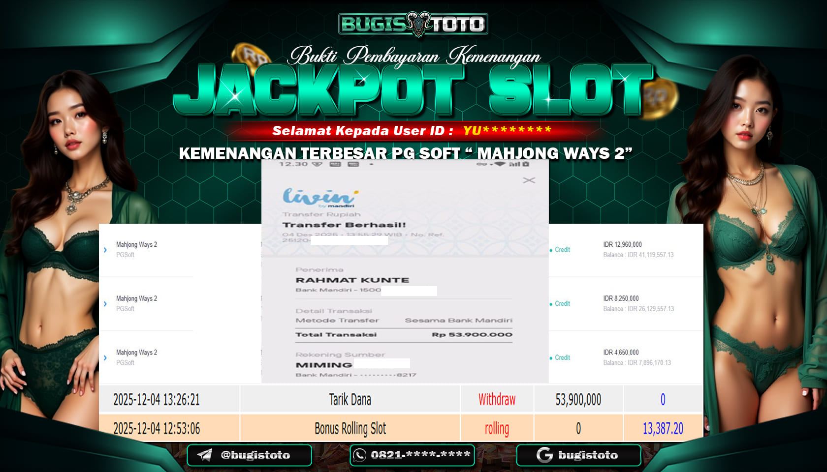JACKPOT MEMBER SETIA BUGISTOTO SLOT RP-18.092.500-,JUTA