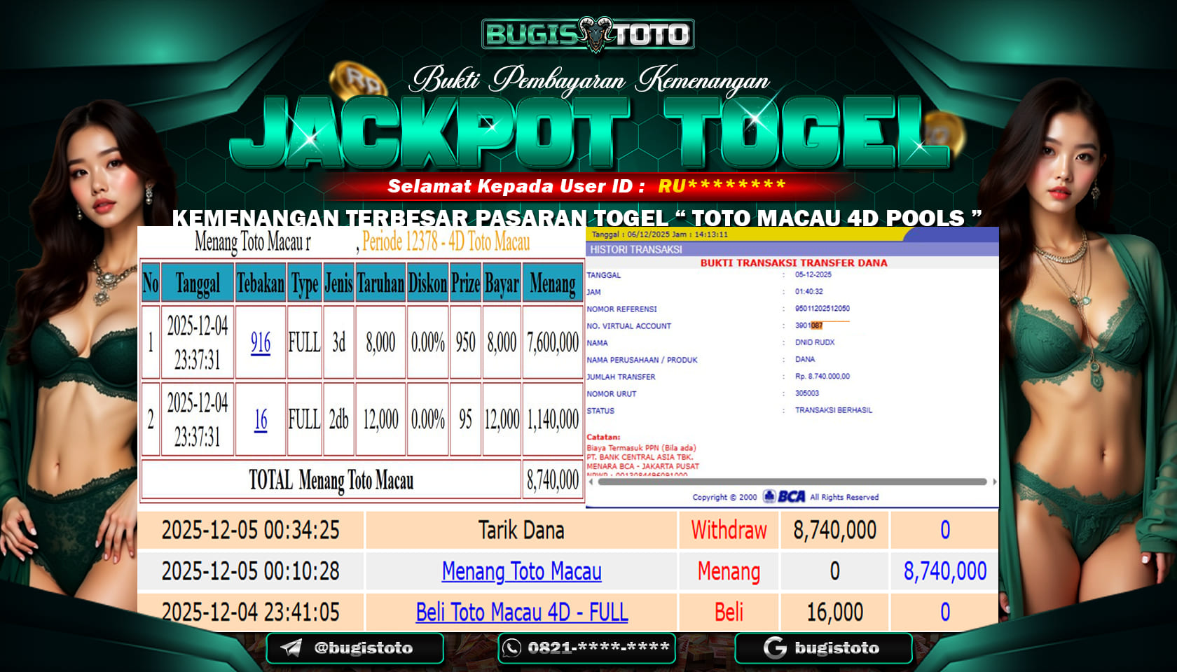 JACKPOT MEMBER SETIA BUGISTOTO TOGEL (TOTOMACAU POOLS 4D ) RP-8.740.000–,JUTA